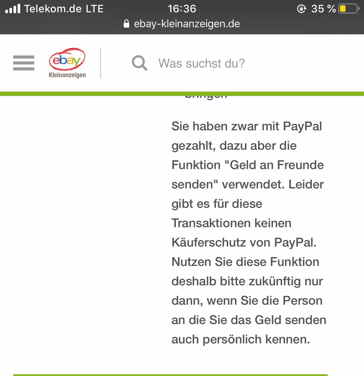 Bei Ebay Kleinanzeigen Geld Zuruck Trotz Per Freunde Paypal Betrug Kauferschutz